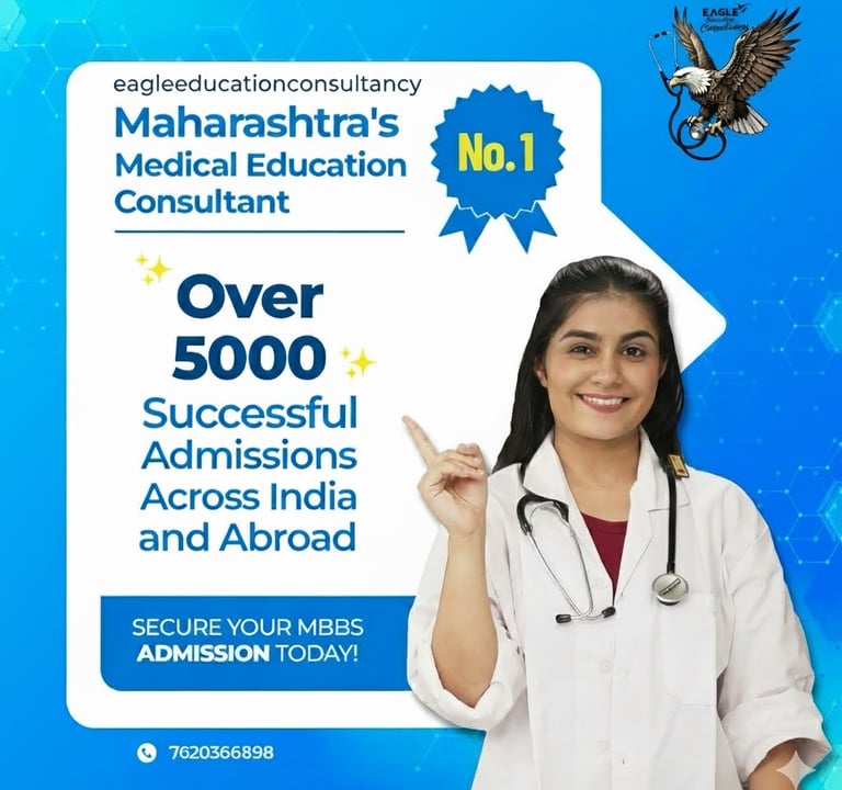 This is precisely where Eagle Education Consultancy soars into action. With a proud legacy of 10 years of experience, we have successfully facilitated over 5000 admissions, turning dreams into reality for aspiring doctors across the nation and abroad. Our mission is to provide a clear flight path for students, helping them meticulously select the best medical college that matches their merit and ambition. We are dedicated to mapping each student's career trajectory, guiding them to not only achieve their goals but also to attain the position, prestige, financial security, and professional continuity that a medical career promises. With Eagle Education Consultancy, students can explore opportunities to study MBBS abroad at affordable costs, securing a place in some of the best international medical colleges tailored to their distinction.